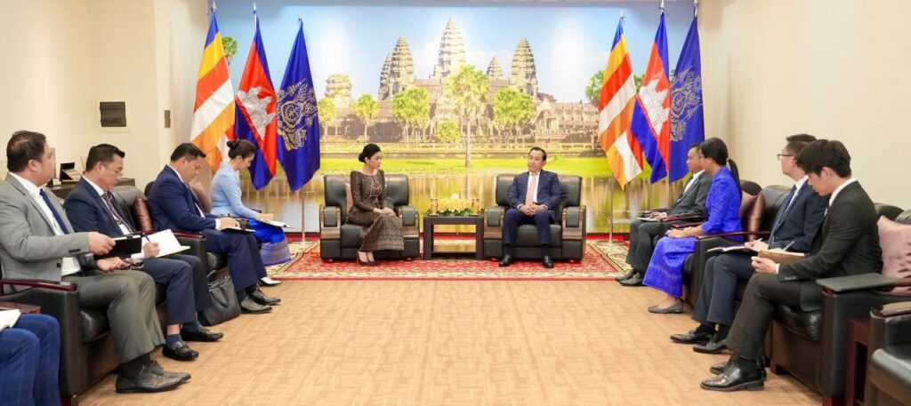 ឯកឧត្តម ហួត ហាក់ រដ្ឋមន្ត្រីក្រសួងទេសចរណ៍ ទទួលជួបសម្តែងការគួរសម និងពិភាក្សាការងារជាមួយ លោកស្រីអ្នកឧកញ៉ា ម៉ៅ ចំណាន ប្រធានសមាគមសិល្បករខ្មែរ និងសហការី ស្តីពីការចូលរួមជួយជំរុញការផ្សព្វផ្សាយពីសក្តានុពលទេសចរណ៍កម្ពុជា ព្រមទាំងស្នើសុំកិច្ចសហការ និងគាំទ្រលើកិច្ចការទេសចរណ៍វប្បធម៌ផងដែរ។