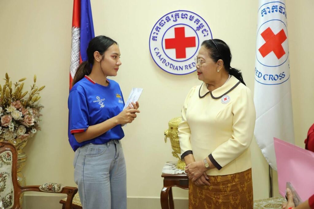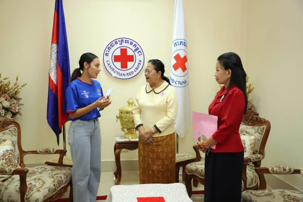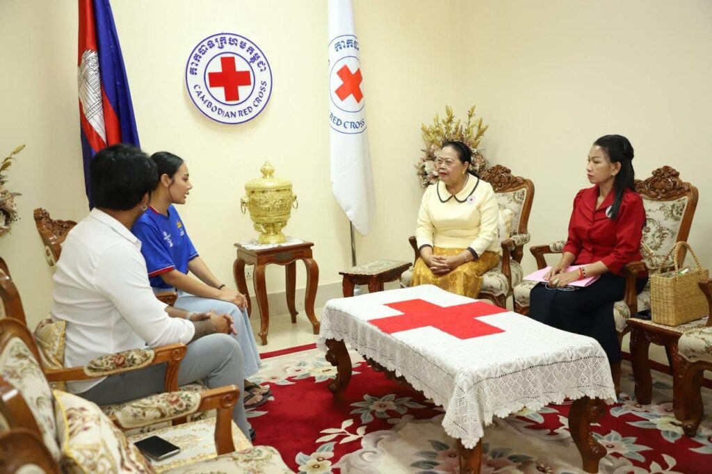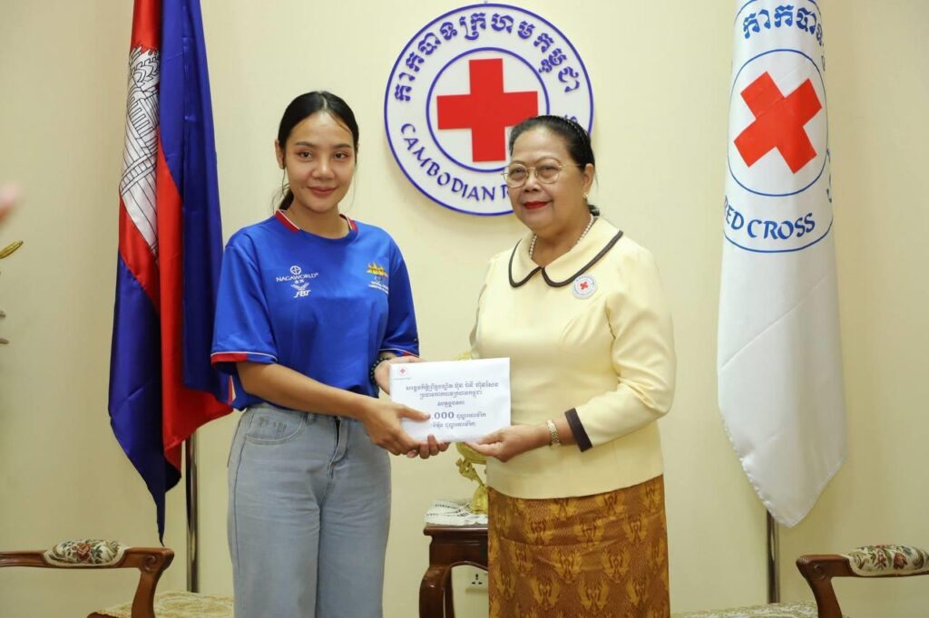 ក្នុងឱកាសនៃការផ្តល់ថវិកាឧបត្ថម្ភមួយចំនួន នៅទីស្នាក់ការកណ្តាលកាកបាទក្រហមកម្ពុជានាថ្ងៃចន្ទ ទី២៣ ខែមិថុនា ឆ្នាំ២០២៥នេះ លោកជំទាវ ម៉ែន នារីសោភ័គ អគ្គលេខាធិការរងទី១ បាននាំនូវប្រសាសន៍សម្តេចកិត្តិព្រឹទ្ធបណ្ឌិត ប៊ុន រ៉ានី ហ៊ុនសែន ដែលបានផ្តាំផ្ញើសួរសុខទុក្ខ និងលើកទឹកចិត្តឲ្យកញ្ញាកញ្ញា ពេជ្រ ចរណៃ ប្រឹងប្រែងបន្តដើម្បីសម្រេចសេចក្តីប្រាថ្នាដែរខ្លួនបានប៉ង។